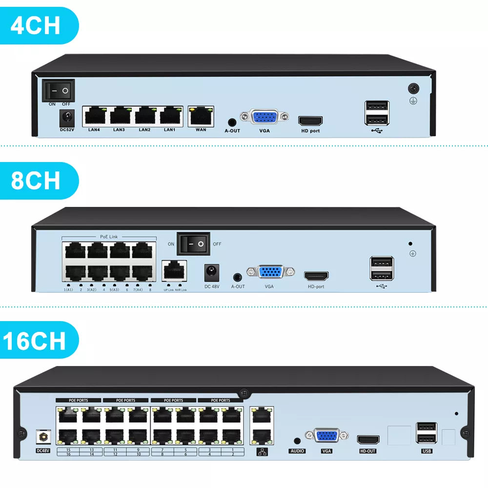 Network interface: 8CH/4CH POE Port, the standard POE IEEE802.3af/at Protocol