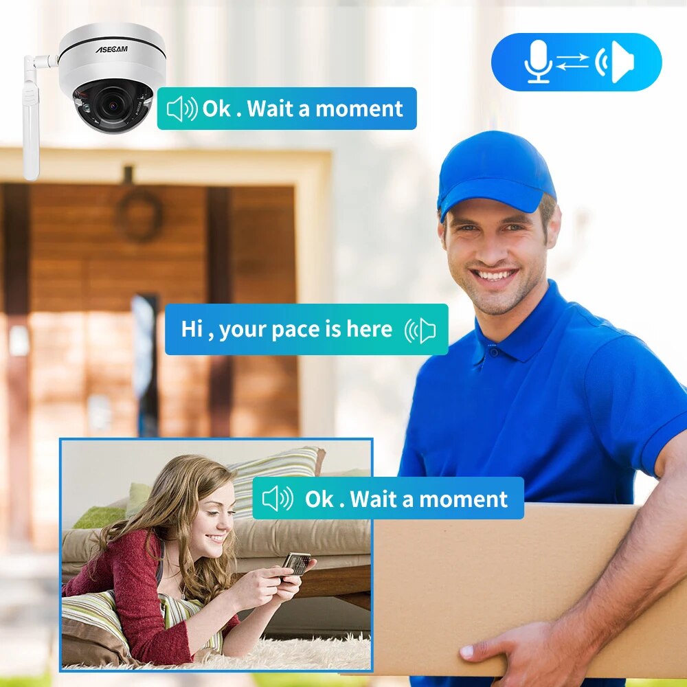 Two-way audio: Our outdoor security cameras allow two-way online communication.(Without speaker, need to add active speaker)